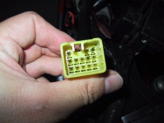 スイッチボックスのコネクタ部分です。 右上の2つのラインが、ウィンカーの動作と逆の 働きをします。 (例えば、右ウィンカー動作時は、右ポジションが 消える。) |