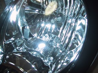HIDバルブを取り付けたところです。2−3ミリのスペーサ(下駄)がないと、ぐらついてしまうので、適当に自作しました。 | |